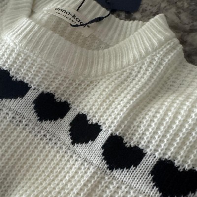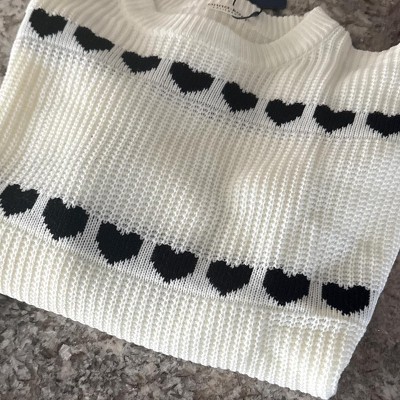 This long sleeve knit sweater features a charming heart pattern that adds a playful touch to your everyday style. With its cozy ribbed texture and relaxed fit, this crew neck sweater is perfect for layering or wearing on its own. The soft, comfortable fabric ensures warmth without sacrificing style, making it ideal for casual outings or lounging. Pair it with jeans for a cute and cozy look that s perfect for cooler weather.