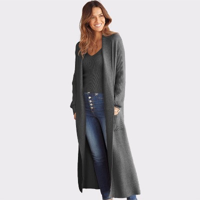 Anna-Kaci Women's Long Sleeve Maxi Cardigan with Button Front and Deep Side Slit