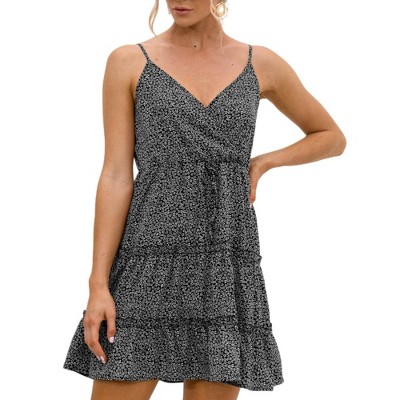 • A: The dress has a playful ruffle hemline that adds movement and feminine charm.