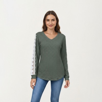 The Anna-Kaci Women's Long Sleeve Ribbed Knit Top combines cozy comfort with simple style. Designed with a flattering curved hem and a subtle button-front detail, this top offers a relaxed fit and soft ribbed texture. Perfect for layering or wearing on its own, it pairs effortlessly with jeans or leggings for a versatile everyday look.