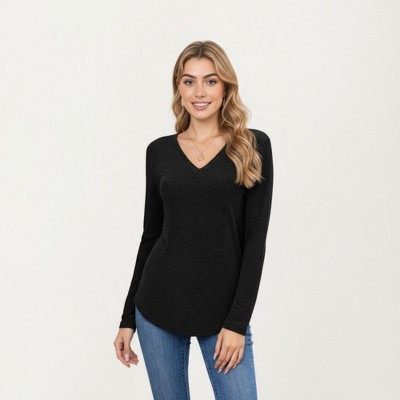 The Anna-Kaci Women's Long Sleeve V-Neck Top features a flattering V-neckline and subtle ruched side detailing for a modern, feminine touch. Crafted from soft, breathable fabric, this versatile top offers both comfort and style, making it perfect for layering or wearing on its own. Designed with a relaxed fit, it pairs effortlessly with jeans or skirts for a polished everyday look.