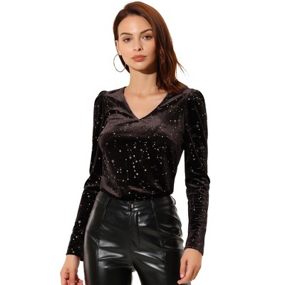 Product Name: Anna-Kaci Women's Long Sleeve Velvet Button-Up Shirt with Chest Pocket - Small, Brown