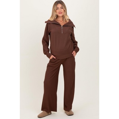 Anna-Kaci Women's Maternity Relaxed Fit Long Sleeve V-Neck Top and Soft Wide-Leg Lounge Pants Set with Easy Stretch Fabric - 1 of 4