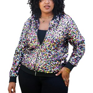 Anna-Kaci Women's Plus Size Sequin Bomber Jacket - 1 of 4