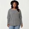 Anna-Kaci Women's Plus Size Striped Knit Long Sleeve Pullover Top with Drop Shoulder Fit and Soft Textured Fabric