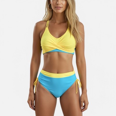 Anna-Kaci Swim Women's Ribbed Bikini Set with Scoop Neck Bralette and High Cut Bottoms - X Large, Yellow