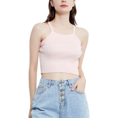 Flattering Design: The stretch rib knit forms to your body, providing a flattering silhouette. With its high neckline and thick straps, this top offers a comfortable and supportive fit, eliminating the need for a bra.