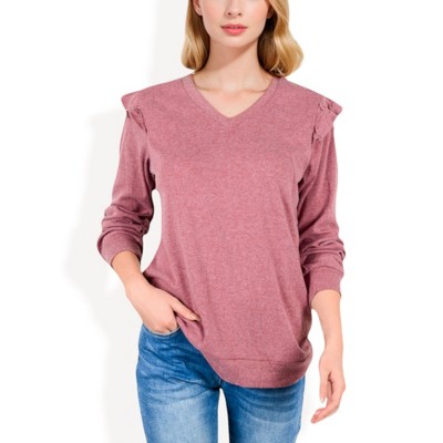 Product Name: Anna-Kaci Women's Satin Blouse with Keyhole Neckline and Long Sleeves - Medium, Mauve Pink