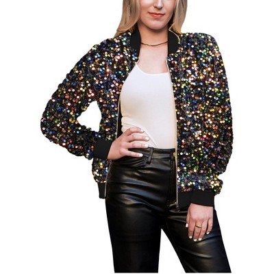 • Shimmering Sequin Design: The jacket is fully adorned with sequins, creating a dazzling effect that catches the light and adds a touch of glamour to any outfit, perfect for standing out at parties or events.
