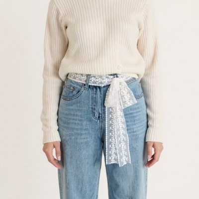 Alilang Women's Sheer Lace Overlay Belt with Side Tie Detail 78.5x2in - White