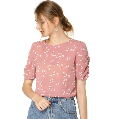 This short sleeve blouse features a softly gathered V-neckline and relaxed silhouette for a refined yet effortless look. Designed with rolled cuffs and a breezy fit, it offers both style and comfort for daily wear. The lightweight woven fabric drapes beautifully and pairs easily with trousers, jeans, or skirts. Whether dressed up or kept casual, this versatile top is a polished staple for any wardrobe.