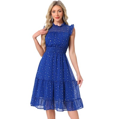 • Ruffled Sleeve Detail: Short sleeves with ruffled accents add a feminine and playful touch to this classic dress design.