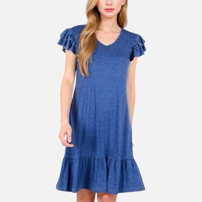 The Anna-Kaci Women's V-Neck Babydoll Dress combines a flattering V-neckline with a playful tiered ruffle hem for a charming, feminine look. Featuring a button-front design and 3/4 sleeves with tab details, this dress offers a relaxed and comfortable fit. Made from soft, breathable fabric, it ensures all-day comfort while maintaining its stylish silhouette. Perfect for pairing with sandals or boots, this versatile dress effortlessly transitions from casual outings to more dressy occasions.