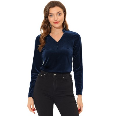 Anna-Kaci Women's Velvet Long Sleeve Blouse offers an effortlessly chic look with its lustrous velvet fabric and refined design. The ruffled collar and button-front detail add sophistication, while the long sleeves ensure a classic touch. Perfect for pairing with jeans or skirts, this blouse transitions seamlessly from casual outings to elegant occasions. Its smooth and lightweight fabric provides comfort and style for any wardrobe.
