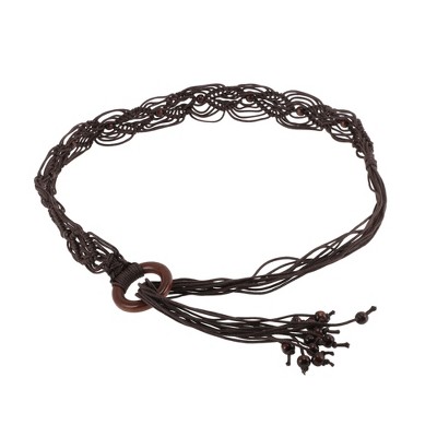 Alilang Women's Woven Rope Belt with Large Circular Buckle and Bohemian Knot Detail 49in - Coffee