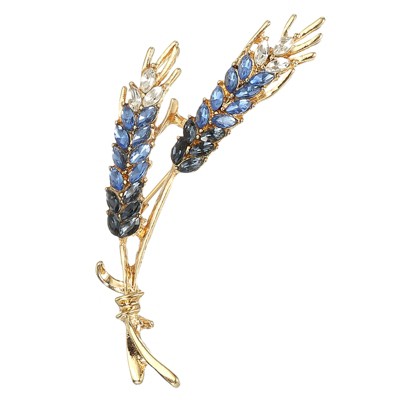 Alilang Zircon Rose Flower Brooch Pin Rhinestone Floral Lapel Pins Dress Blazer Suits Pin Accessory - Blue