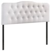 Instill soft tones and a meaningful design with the Annabel tufted arch headboard. Deep inset buttons adorn this magnificent centerpiece for your bedroom decor. Annabel is made from fiberboard, plywood and fine vinyl upholstering for a construction that is both lightweight and long-lasting. Carefully crafted with flowing contours and a richly rewarding design, sleep peacefully while supported by this exceptional headboard. Fits queen size beds.