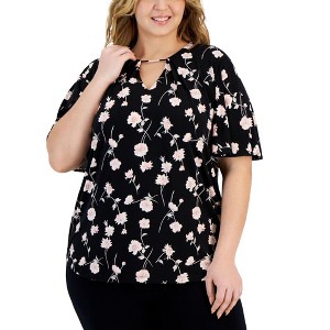 Anne Klein Womens Printed Floral Peasant Blouse