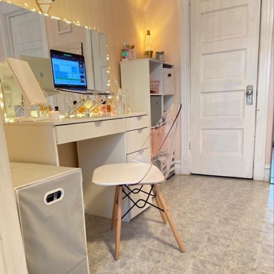 A good buy! Easy to assemble. Easy to clean and it looks really pretty without taking much space in a room. I use it as my chair for my vanity. The only small downside is that I don’t feel 100% confident in relying my back on this chair, or it might break, so it is more so of a chair for makeup rather than one to use for long hours such as wfh. Photo attached.