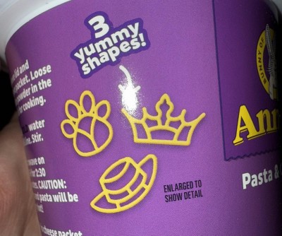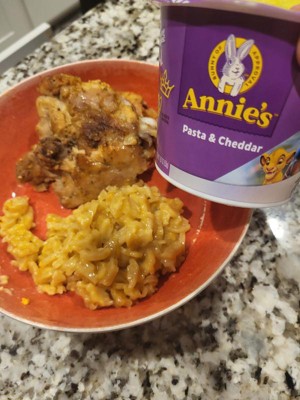 Kids will come hopping for Annie's Disney Pixar mac and cheese. Each microwavable mac and cheese cup comes with yummy organic pasta in four fun shapes based on Disney Pixar characters: Dory, Woody, Mike Wazowski, and Dash. Every serving of delicious goodness has 8g of whole grain.* Busy bunnies will love the quick and easy preparation of Annie's mac and cheese. Simply remove lid and cheese packet and add cold water to fill line. Then microwave on high for about 2:30 minutes, stir in cheese packet, cool, and enjoy. Everybunny will love this magical Disney mac and cheese. Annie's makes products in over 20 family-friendly categories, from fruit flavored snacks and cereal to mac and cheese. For busy bunnies and families on the go, we help make life a little easier and more delicious by spreading goodness through tasty foods and kindness to the planet. *8g whole grain per serving. At least 48g recommended daily.