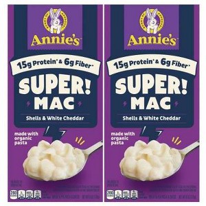 - MIGHTIER BY THE MOUTHFUL: Each serving of Annie's Super! Mac has 15g of protein and 6g of fiber*; *Contains 6g of total fat per serving. See nutrition information for fat and sodium content