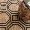 Interlocking inky tiles create soothing symmetrical shapes on a natural backdrop. Hardworking undyed jute is hand knotted for subtle texture and surprisingly soft surface interest, a modern and unique addition to any decor.