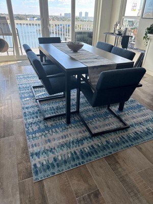 [This review was collected as part of a promotion.] We ordered this blue paint chip rug for our foyer and the beige, blues and greens mimic the colors of the beach and fit in perfectly in our home in Myrtle Beach.