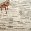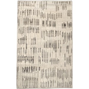 A: The rug showcases an abstract, tonal pattern that combines modern aesthetics with a cozy feel.