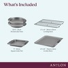 - 5 PIECE BAKEWARE SET INCLUDES: Two 9-Inch Round Cake Pans, 9-Inch Square Cake Pan, 14-Inch x 16-Inch Cookie Sheet, 11-Inch x 14-Inch Cooling Rack