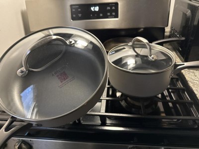 - PREMIUM DURABILITY: Hard anodized toughness with a thick, edge-to-edge stainless steel base for nonstick pots and pans that works on any stovetop, including induction. Plus the versatility to go oven safe up to 500°F (350°F with lids)
