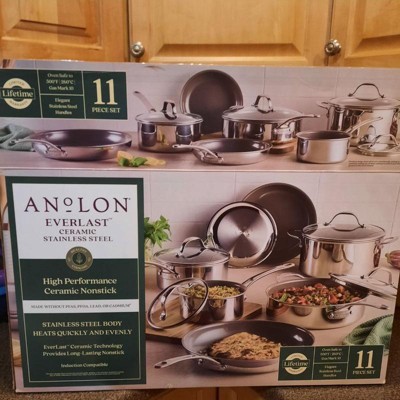 Anolon EverLast 11pc Ceramic Nonstick Clad Induction Pot and Pan Stainless Steel Cookware Set