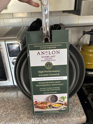 Anolon EverLast 8.5", 10" and 12.25" Ceramic Nonstick Clad Induction Stainless Steel Frying Pan Set