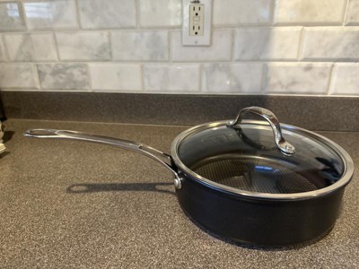 - INNOVATIVE BASE: Hybrid nonstick saute pan features a thick, uniquely constructed stainless steel base that delivers incredibly even heat on any cooktop, including induction