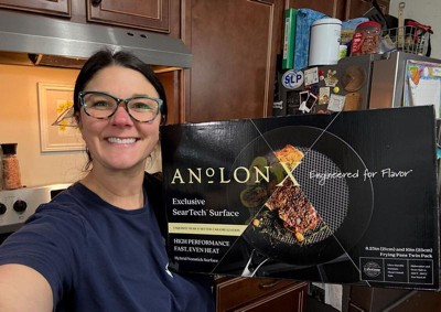 Life is full of flavors. Let Anolon X unleash yours. Introducing exclusive SearTech™ technology, a unique cookware base combined with a stainless steel mesh that keeps oils in the middle of your pots and pans, uniting fat and heat for unparalleled caramelization and browning. From impeccably seared dayboat scallops to sizzling steaks to full-flavor sauces, soups, and reductions, this set of indispensable and innovative pots and pans is designed to cook like no other. The first nonstick hybrid cookware designed to sear like cast iron, Anolon X pots and pans feature a thick, uniquely constructed stainless steel base to keep cooking surfaces uniformly flat while delivering impeccably fast and even heat. An ultra-durable nonstick finish matched with unique, flush rivets provides one of the smoothest cooking surfaces yet, and Anolon X pots and pans are metal utensil safe, induction-suitable, oven safe to 500°F for the perfect finish, and dishwasher safe for the easiest cleanup. In the pursuit of flavor, indulge yourself in unfair advantages. Made-to-last cookware outfitted with tempered glass lids to lock in heat, dual-riveted handles for confidence and control, and the exclusive SearTech™ cooking surface to create flavors that stop conversations. Anolon X: lock in flavor and throw away the key.
