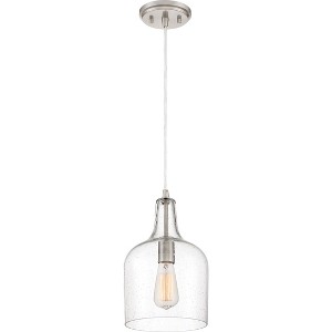 Mini pendants offer an easy, stylish way to illuminate a kitchen island or bar area. The Anson pendant is comprised mainly of a clear seeded glass shade, allowing for ample task lighting. The brushed nickel finish completes the design and adds a subtle hint of shine. Hang Anson by itself or in groupings for maximum lighting and style.