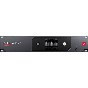 Galaxy 64 Synergy Core is a high-end recording system that connects entire studio within a 2U rack space while providing high-fidelity audio and onboard plug-in processing for most demanding projects. With Dante, HDX and Thunderbolt connectivity, the world’s first 64-channel AD/DA converter offers unbeatable flexibility when moving sound around high-profile production facility, live stage, broadcast or other enterprise applications. The interface is designed to be the hub of entire recording environment that eliminates the need for any external modules and expansion cards, thus centralizing entire setup. Galaxy 64 Synergy Core is the only interface to offer two Dante ports for audio networking, four HDX ports for a full array of 128 channels at 192kHz sample rate in Pro Tools as well as Thunderbolt connectivity. These options can be used simultaneously with multiple systems for easy adaptation to different workflows with preferred DAW applications. This is all made possible by utilizing Antelope’s exclusive FPGA configuration and advanced digital routing.The interface comes with 36 real-time plug-ins in a collection largely composed of software emulations of vintage analog gear found in the world’s most renowned facilities. The onboard Synergy Core offloads all processing to the interface while allowing direct monitoring with plugins in real time with no perceived latency – a feature widely used in live performances.The interface is designed to be the hub of entire recording environment eliminating the need for any expansion modules and cards, thus centralizing entire setup. Switching from project to project is effortless with the fast recall of presets and adapting to different workflows is made easier by allowing to address numerous applications using a single hardware frame.Dante Audio Over IP The audio networking choice of nearly all professional audio manufacturers, Dante audio networking uses standard IP networks to transmit high-quality, uncompressed audio with near-zero latency. The ease of installation, affordable cabling and glitch-free transmission make Dante the optimal choice for installations, live events, production facilities and any situation where large volumes of high-definition digital audio must be reliably transferred over large distances.Galaxy 64 Synergy Core joins the expansive Dante ecosystem with two RJ-45 ports, each carrying 64 channels of 24-bit/192kHz audio. This configuration provides straightforward integration and reliable redundancy, with the secondary RJ-45 port serving as a backup 64-channel Dante route. 128 Channels in Pro Tools Galaxy 64 Synergy Core is the only interface to offer four HDX ports. Each a primary port, they enable interfacing to two HDX cards simultaneously for a primary/secondary recording setup or a full array of 128 channels ready to interface across multiple Pro Tools sessions through several hosts. What is especially impressive about Antelope Audio’s exclusive FPGA configuration is that it allows this channel count to be maintained at high sample rates such as 192kHz.Cross-Platform Interface Two Thunderbolt 3 ports and custom drivers for Windows and macOS guarantee optimal cross-platform operation for the Galaxy 64 Synergy Core. Developed from the ground up and field-tested for low latency and stability at high sample rates, the Antelope Thunderbolt driver works behind the scenes to carry 64 channels of 192kHz audio wherever want them to go – on both PC and Mac setups based around any market-leading DAW. The left Thunderbolt port enables USB-C connection to a secondary computer for remote Control Panel configurations. This is the first Antelope Audio interface featuring two Thunderbolt 3 ports that enable daisy-chaining