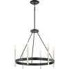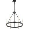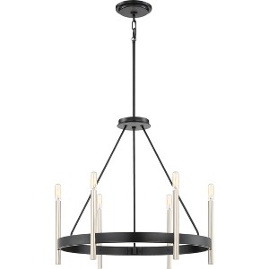 The Anthem is a master class in minimalist elegance. A simple circular frame in matte black hosts a series of exaggerated candle sleeves in lustrous brushed nickel. The contrast in scale and finish creates drama in the otherwise modest design.