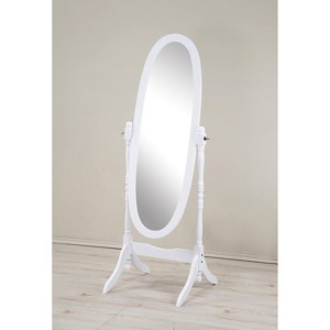 Add a touch of traditional elegance to your space with our beautiful black cheval-style mirror. This freestanding mirror features an elongated oval glass that tilts for full-body reflection, encased in a sturdy wood frame and stand. The design allows the mirror to swing between stylish turned posts and curved bracketed feet, with a stretcher for added stability between the legs. Measuring 22.5W x 16D x 59.26H inches, this mirror is a perfect blend of form and function. Please note that the actual color may slightly differ from the photo due to monitor display variations.