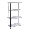 Romance Copy This bookshelf features a classic rectangular design with four shelves, offering ample storage for books, decor, and other items. Each sturdy 15mm panel ensures stability and durability, while the powder coating finish adds a protective layer and enhances its appearance. Product Details Set includes One (1) bookshelf Dimensions 44.5 inches high x 24.5 inches wide x 12.5 inches deep Materials Paper Veneer, Particle Board, Metal Finish color Antique White and Black