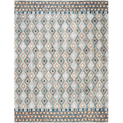 Introducing the epitome of elegance and craftsmanship, our exquisite 8' X 10' area rug crafted in the vibrant hues of turquoise and silver. This large rectangular woolen masterpiece is the result of meticulous hand-tufted techniques fostered by the skilled artisans of India.