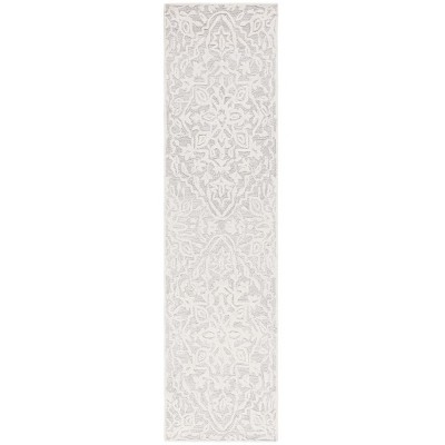 Elevate your decor and treat your feet to the opulence of our silver and ivory hand-tufted runner, a blend of traditional beauty and contemporary sophistication that seamlessly integrates into your home.