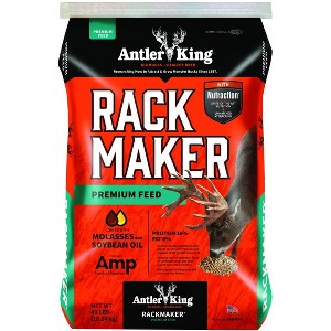 Antler King’s RACKMAKER is a nutritious feed that works in both gravity and spin-cast type feeders. RACKMAKER’s highly palatable pellets and corn are coated with a premium blend of soybean oil and molasses for added fat and maximum appeal. RACKMAKER also includes roasted soybeans and black oil sunflower seeds, to provide a higher fat content, which is important during rut and the colder winter months. This tasty mix contains Amp™, our proprietary digestive health supplement, to help improve digestive efficiency and immune function. Use year round for best results.