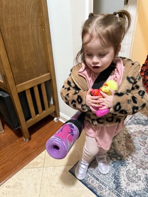 Our 2 year old granddaughter loves her own yoga mat. She can carry it easily with the carrying strap included with the mat.