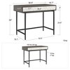 The Olivia Computer Desk blends modern sophistication with smart functionality, featuring a stylish gray wood veneer finish with brown undertones and a unique geometric-patterned drawer. Built with real wood veneer and sturdy metal legs, it includes a hidden USB charging port to keep devices powered and cords organized. With a spacious drawer for supplies and a 100 lb weight capacity, it seamlessly combines fashion and function for any home office or living space.