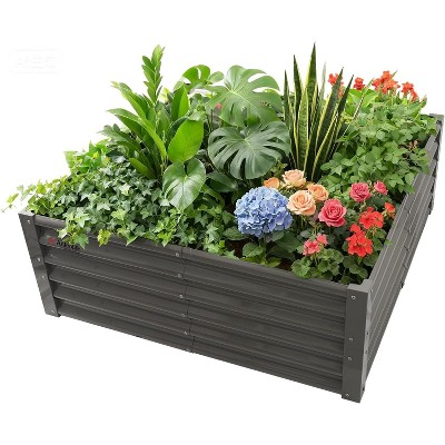30" Extra Tall Galvanized Raised Garden Bed is made of heavy-duty 0.9mm galvanized steel with reinforced support rods for durability and weather resistance. Its 30-inch height allows comfortable gardening without bending, while deterring pets and pests. Tool-free assembly with an open bottom ensures proper drainage and healthy plant growth. Perfect for vegetables, flowers, and fruits, this raised bed offers a long-lasting outdoor planting solution with a 20-year lifespan.
