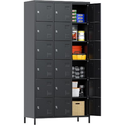 AOBABO 9 Doors Metal Locker for Employees with Hooks and Business Card Holder,Locker with Ventilation Holes for School Garage Office Gym Home,Black