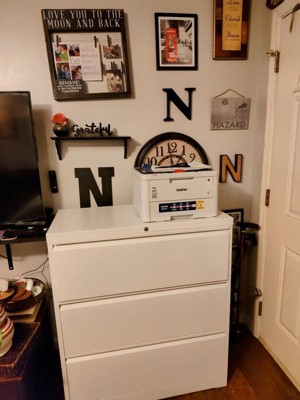 [This review was collected as part of a promotion.] Fantastic file cabinet with ample space in its 3 tiered drawers. Assembly took a bit of time (20 mins) but the directions were easy to follow and the result is a sturdy place to file and organize a home office.