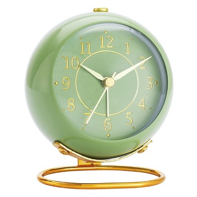 Aoibox 3" Cute Analog Alarm Clock, Small Retro Table Clock, Silent Metal Desk Clock with Light for Living Room Decor, Bedroom, Bedside, Shelf (Black)