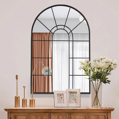 Aoibox Arched Window Wall Mirror, Decorative Mirror for Bathroom, Bedroom, Entryway, Living Room, Farmhouse Wall Decor with Metal Frame in Black