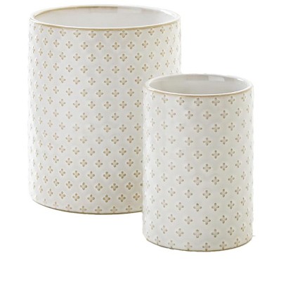 Aoibox Ceramic Kitchen Utensil Holder Set for Countertop, Large Cooking Utensil Crock, Beige, Farmhouse Style, Organizer for Spatulas and Knives